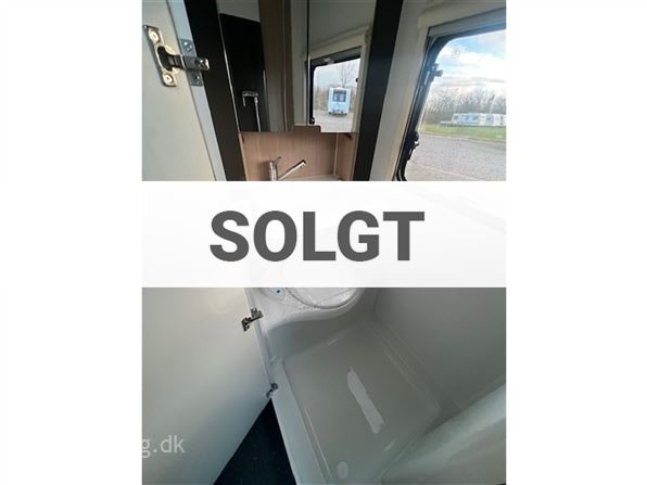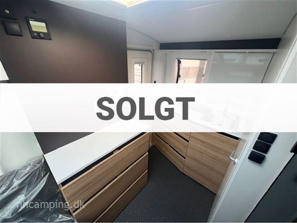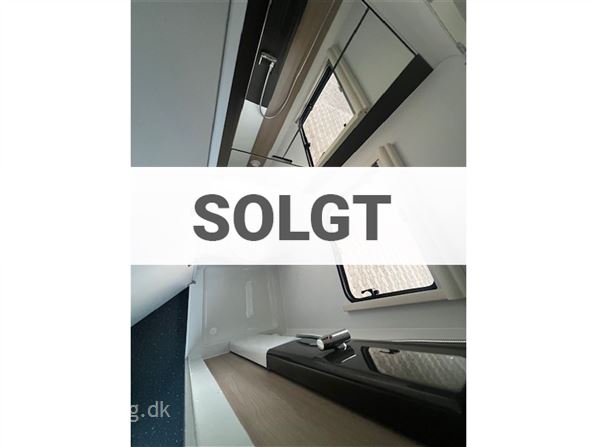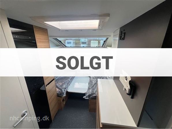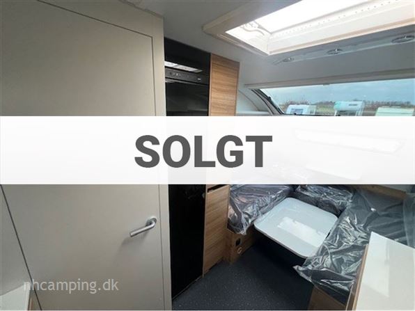 Denne vogn er udstyret med: Stort 142 l køleskab, klædeskab, lameludtræk, gulvvarme, Bluetooth-modtager højtaler, Sky-light vindue.