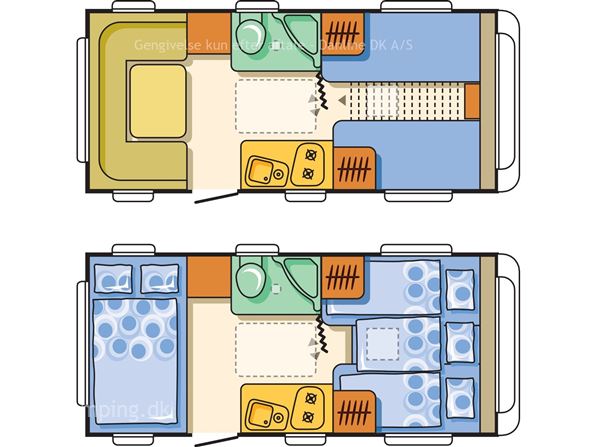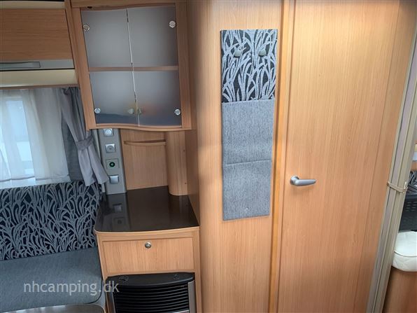 Dejlig vogn med rundsiddegruppe i bagenden toilet og køkken i midten og 2 enkeltsenge med lameludtræk i front.