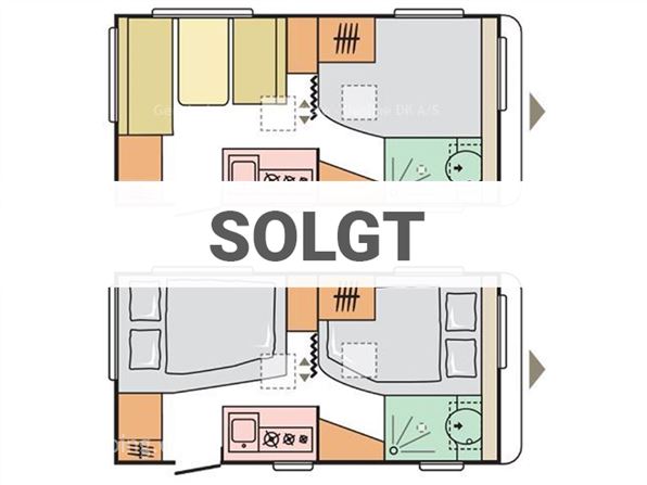 En let rejse campingvogn med fransk seng i front og en sidesiddegruppe i venstre side bag.Den perfekte køre vogn med en totalvægt på kun 1300 kg.