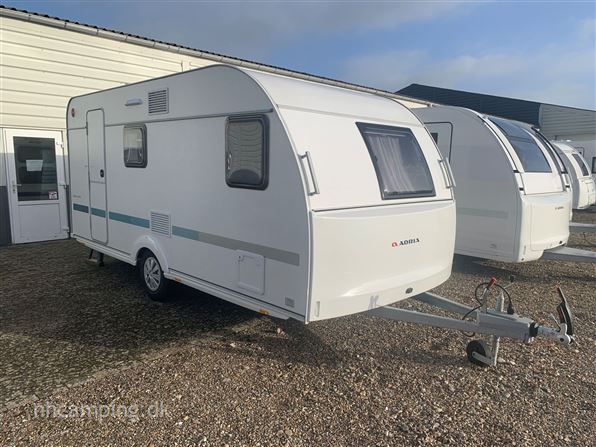 En let rejse campingvogn med fransk seng i front og en sidesiddegruppe i venstre side bag.Den perfekte køre vogn med en totalvægt på kun 1300 kg.