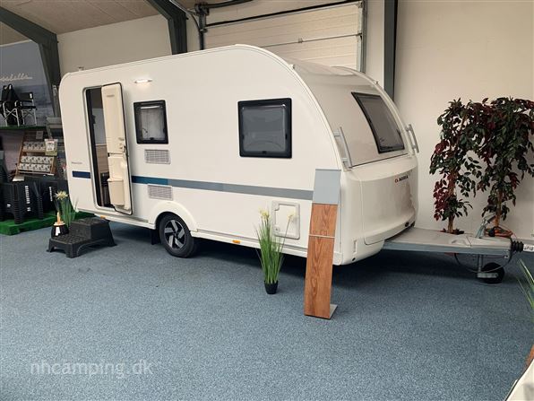 En let rejse campingvogn med fransk seng i front og en sidesiddegruppe i venstre side bag.Den perfekte køre vogn med en totalvægt på kun 1300 kg.